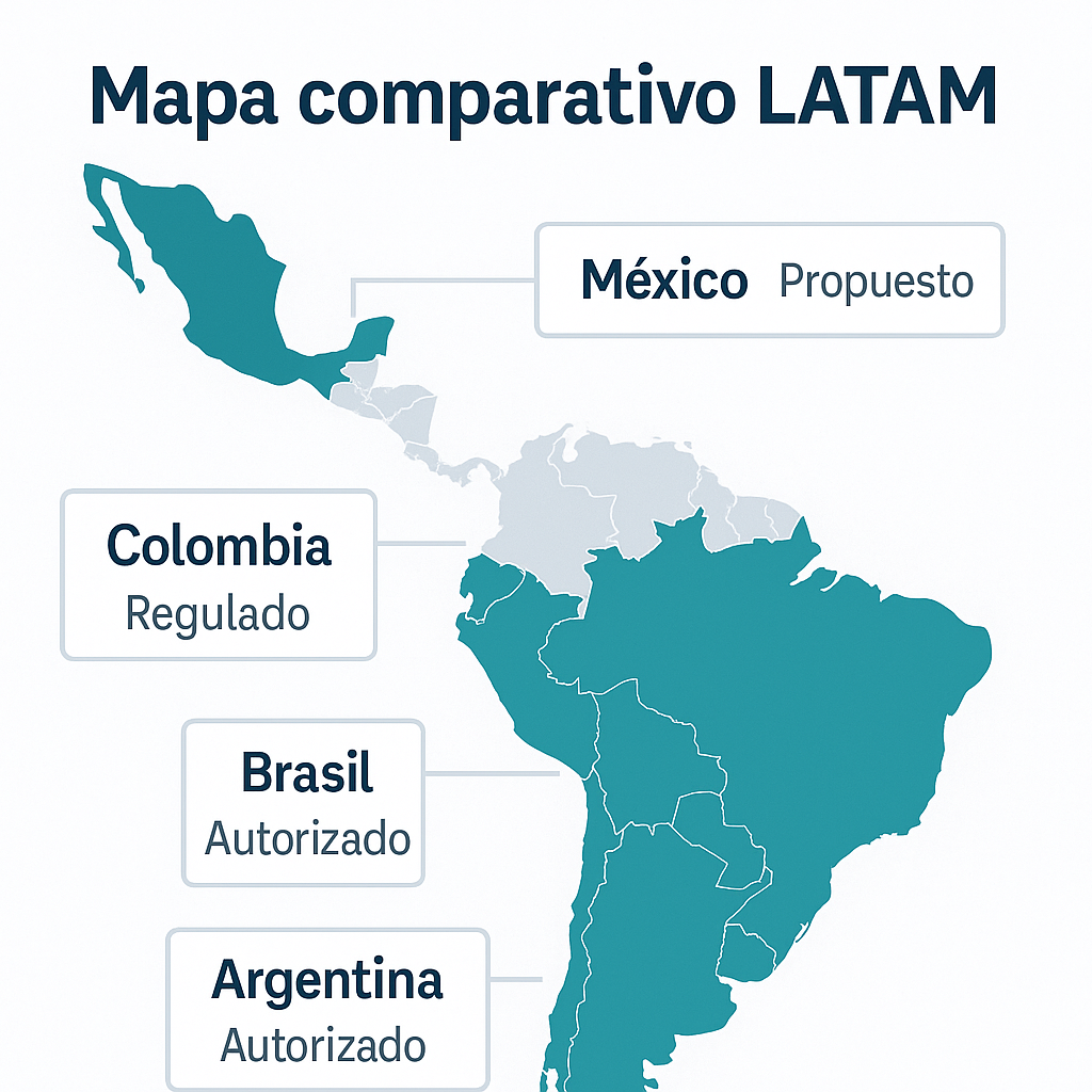 A pesar de su tamaño, México se ha rezagado frente a otras economías de la región. Colombia adoptó un sistema completo de licencias digitales en 2016; Brasil avanza hacia un modelo federal robusto; Argentina opera marcos híbridos en varias provincias.